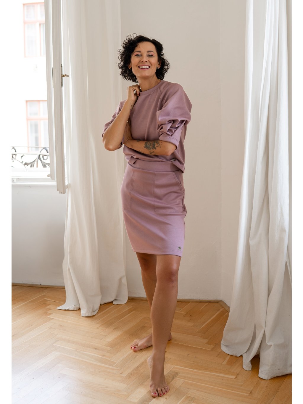 Když ji zkombinuješ s naší mikinou ze stejné látky, vznikne outfit, který tě bude bavit nosit znovu a znovu. Stylový komplet, ve kterém se budeš cítit jako sama sebou – přirozeně krásná a v pohodlí.